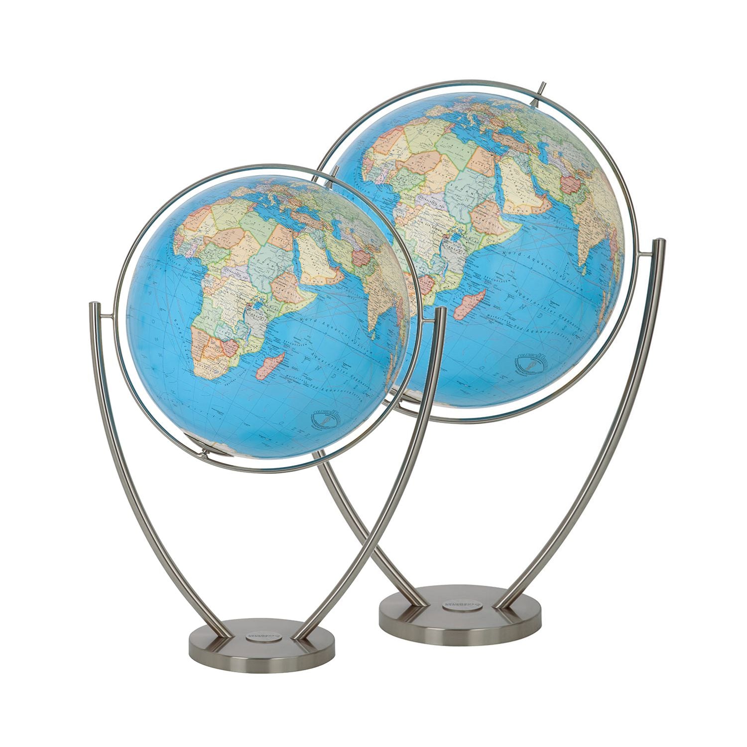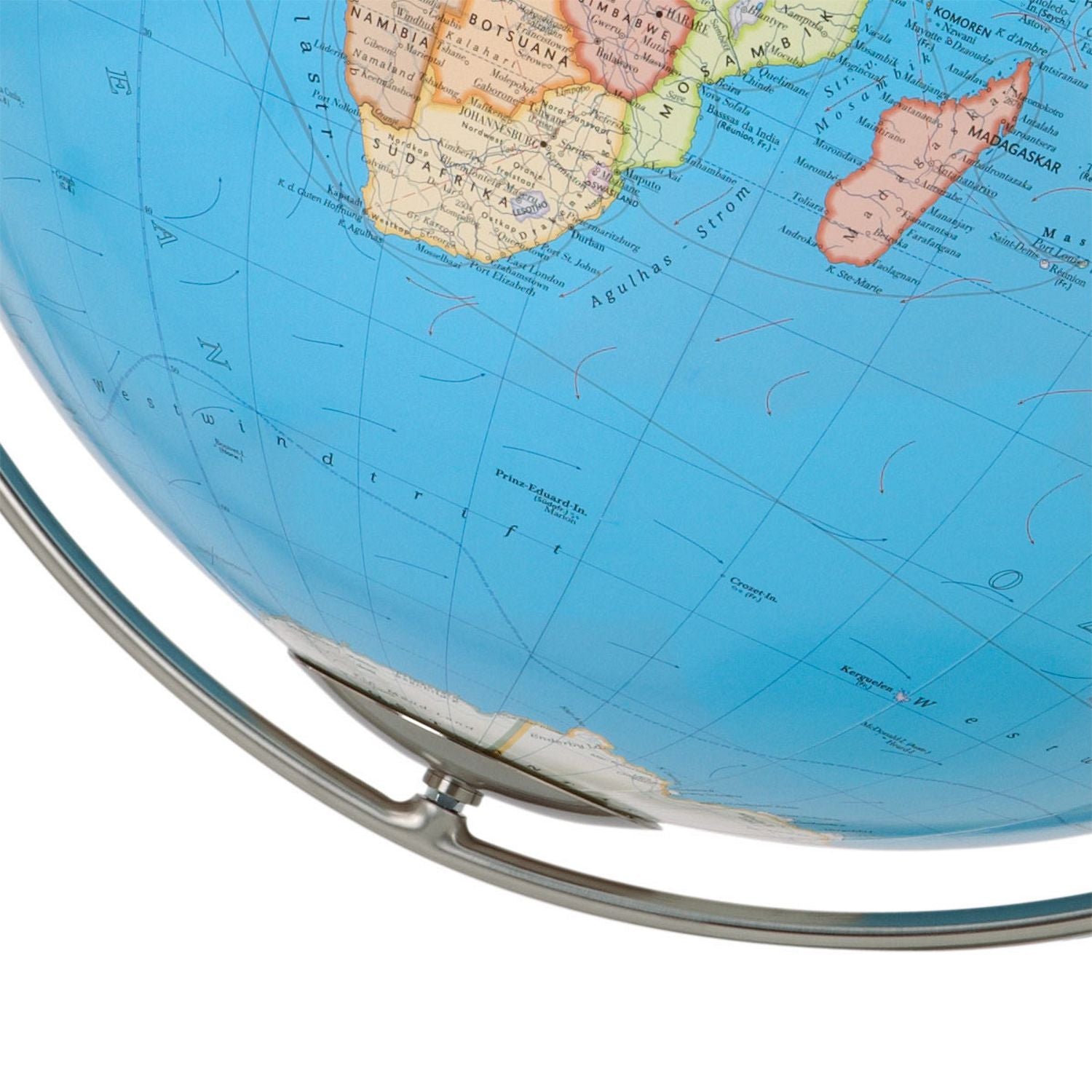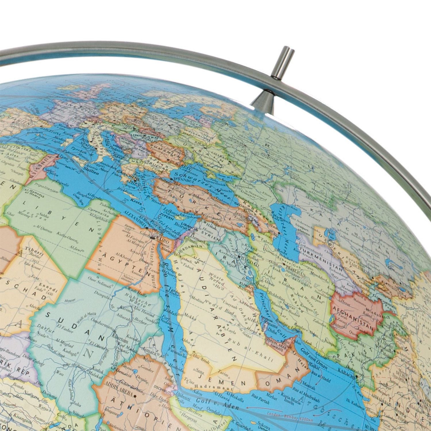 Columbus DUO Großglobus Standglobus mit großer Weltkugel, Beleuchtung und Edelstahl-Gabelfuß, verschiedene GrößenDie stattliche Größe und die schlichte Eleganz machen diesen Globus zu etwas ganz Besonderem. Dank des aufwendig gestalteten Kartenbilds und dem großen Durchmesser, lässt der große Standglobus auch noch die Entdeckung der kleinsten Details unseres blauen Planeten zu. Mit seinem großen Kugelumfang zeigt dieser COLUMBUS Globus das aktuelle politische Kartenbild unserer Erde.